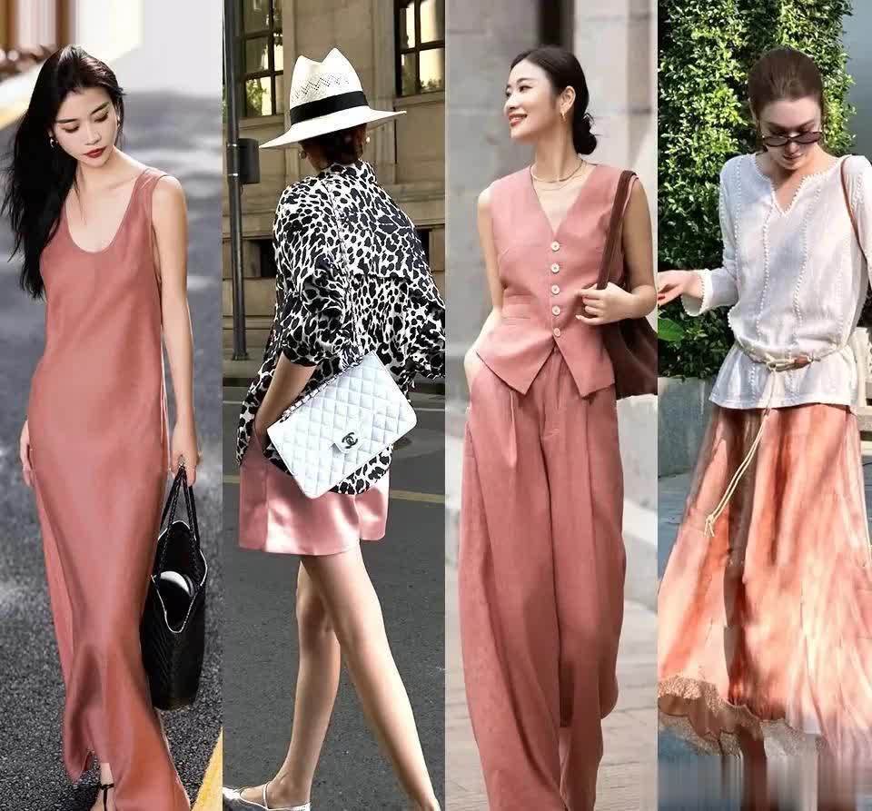 夏天轻氧穿搭也可以选择温柔明媚一些的颜色,饱和度不要太高,带着些灰调的粉色更知性优雅。